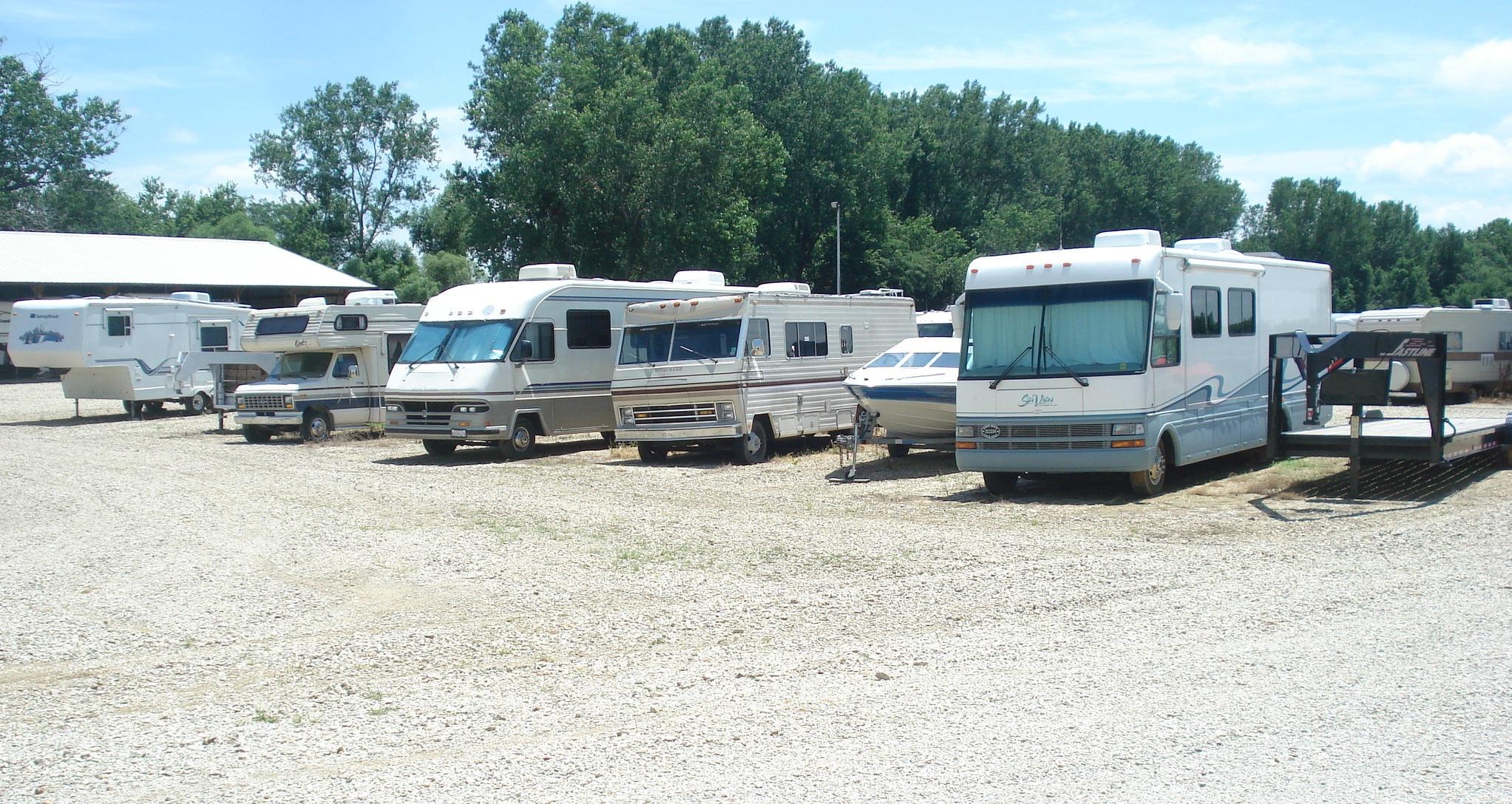 Outdoor parking spaces are in a secured, graveled lot and are approximately 10ft. wide with varying depths depending on the item stored. These are not covered spaces.